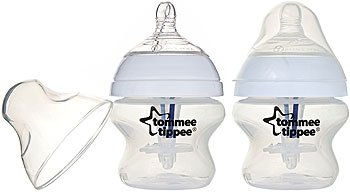 - We've also used these Tommee Tippee Anti Collic Bottles, which have been great. RG only gets about 1 bottle a week or so, but still, she never hesitates to eat with these bottles. As you can tell from her recent weight gain, the girl doesn't mess around when it comes to food. These ones are nice as well, because the little blue thing in the center turns pink when they are warm enough.
