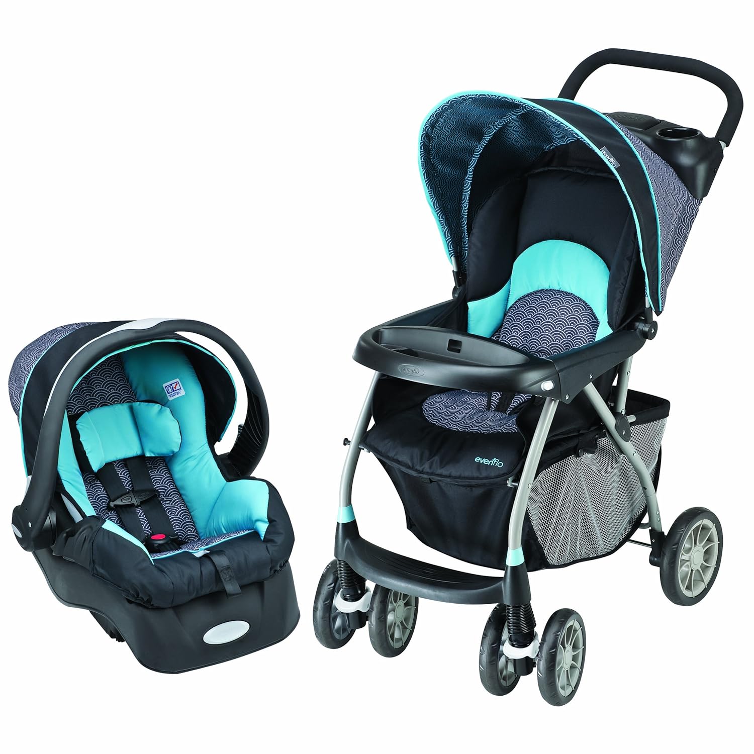 - Carseat/Stroller Combo. We have the Evenflo carseat combo, and it is working well for us. The seat is a lot lighter than others I've held, which I like a lot. The stroller is fairly hardy, although it isn't made for off-roading (she says from experience). I don't find the stroller to be overly heavy, either, and I can close it up with one hand, which was a criteria of mine. And that basket underneath? Totally roomy.